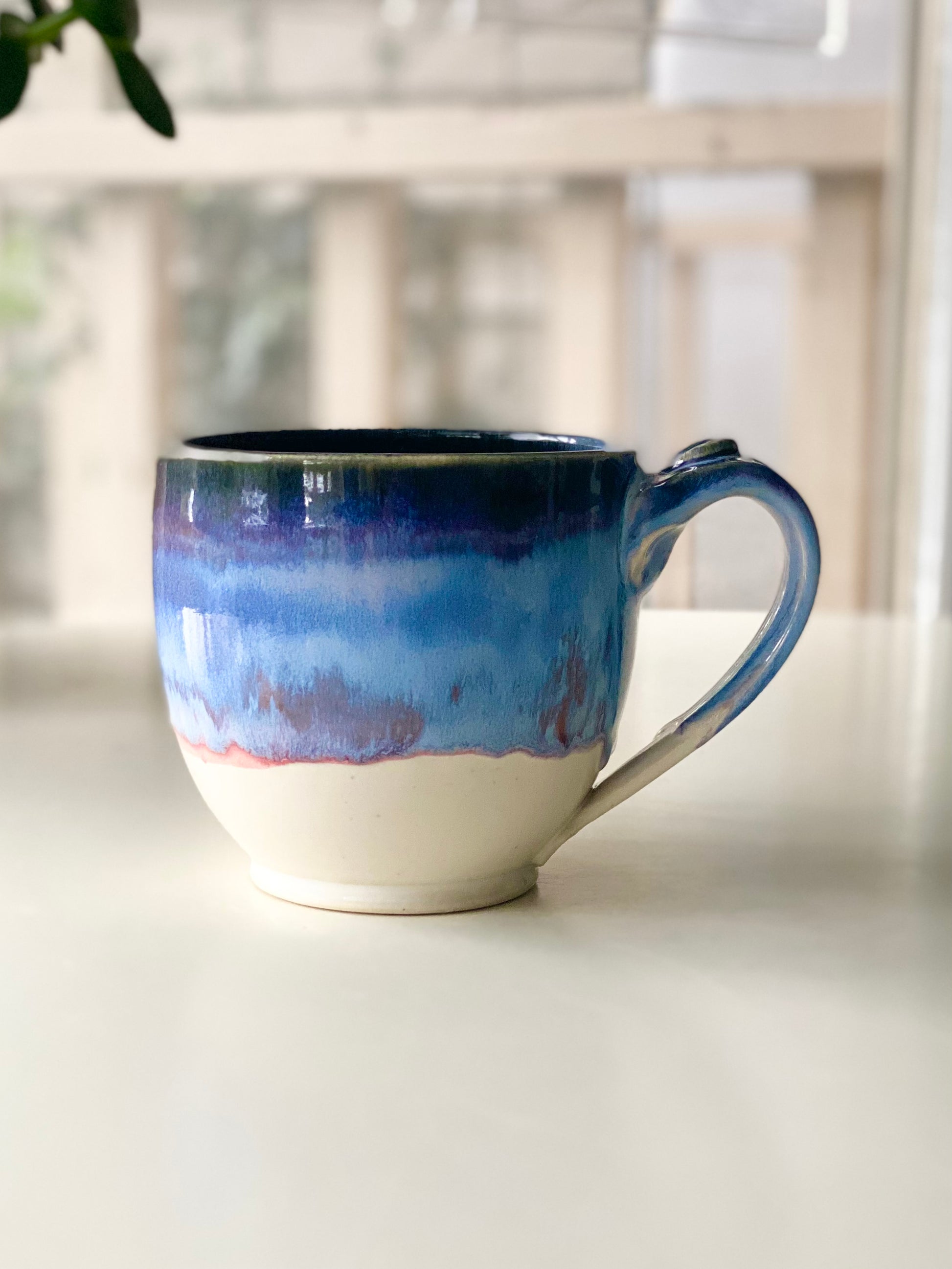 Hand-thrown and meticulously trimmed white stoneware pottery. Coated with several layers of colored glaze to create an impressive finish. Oxidation fired to 2160ºF, each piece is a unique work of art.