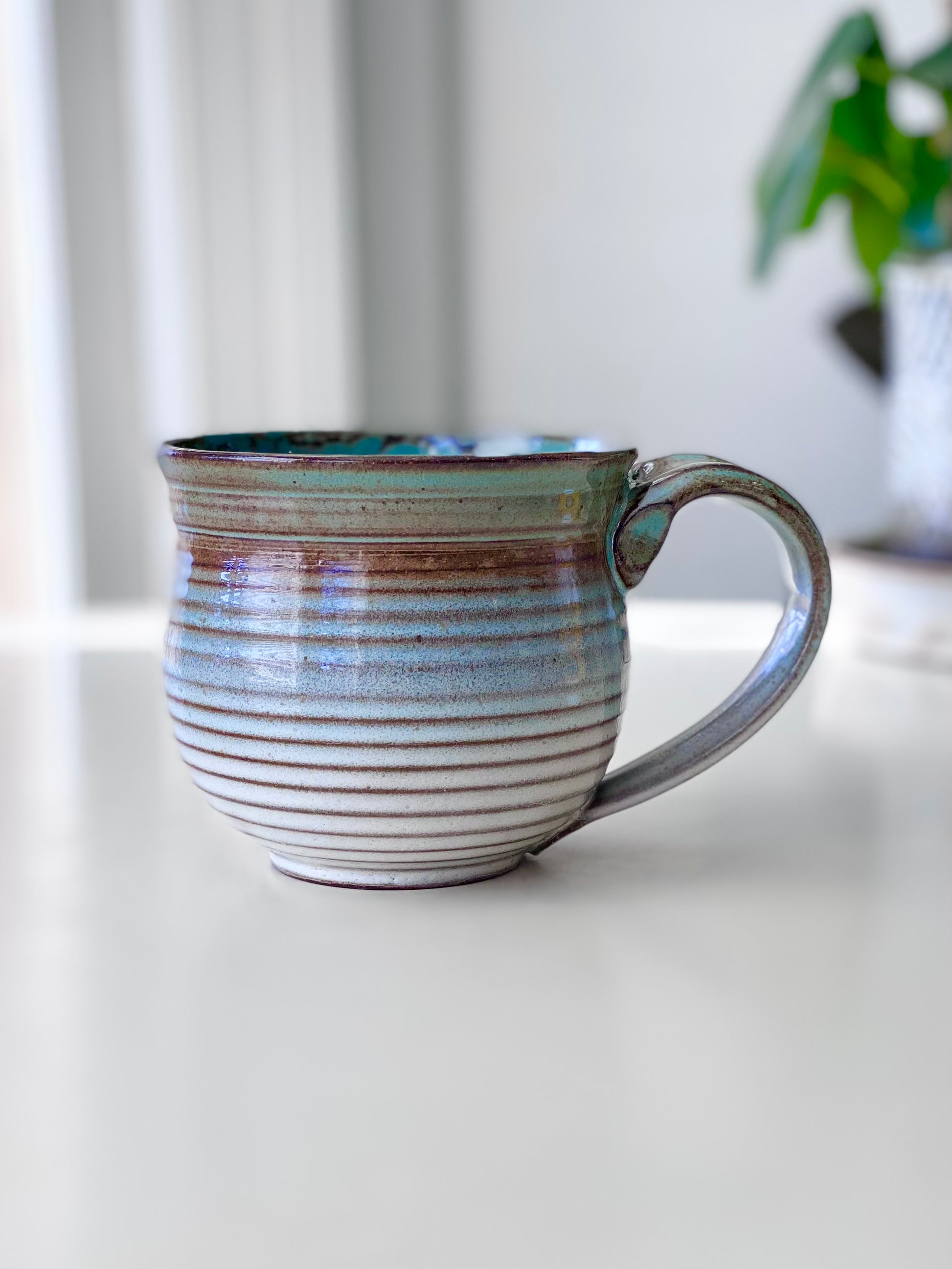 Hand-thrown stoneware pottery, carefully trimmed and layered with premium glazes for rich depth and movement. Oxidation fired to 2160°F, each piece is food safe, dishwasher safe (hand washing recommended), and microwave safe for short use.