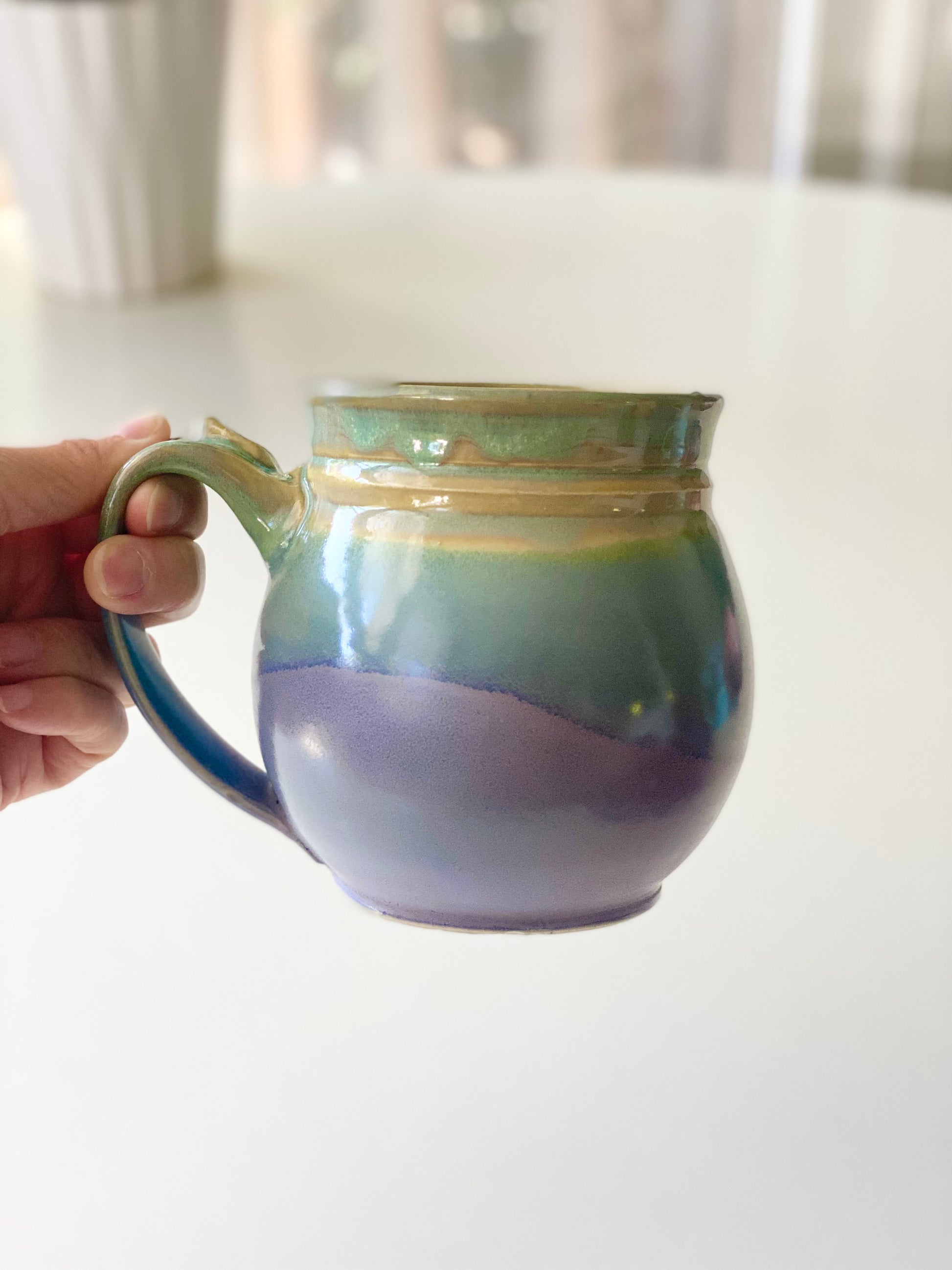 Hand-thrown and meticulously trimmed white stoneware pottery. Coated with several layers of colored glaze to create an impressive finish. Oxidation fired to 2160ºF, each piece is a unique work of art.