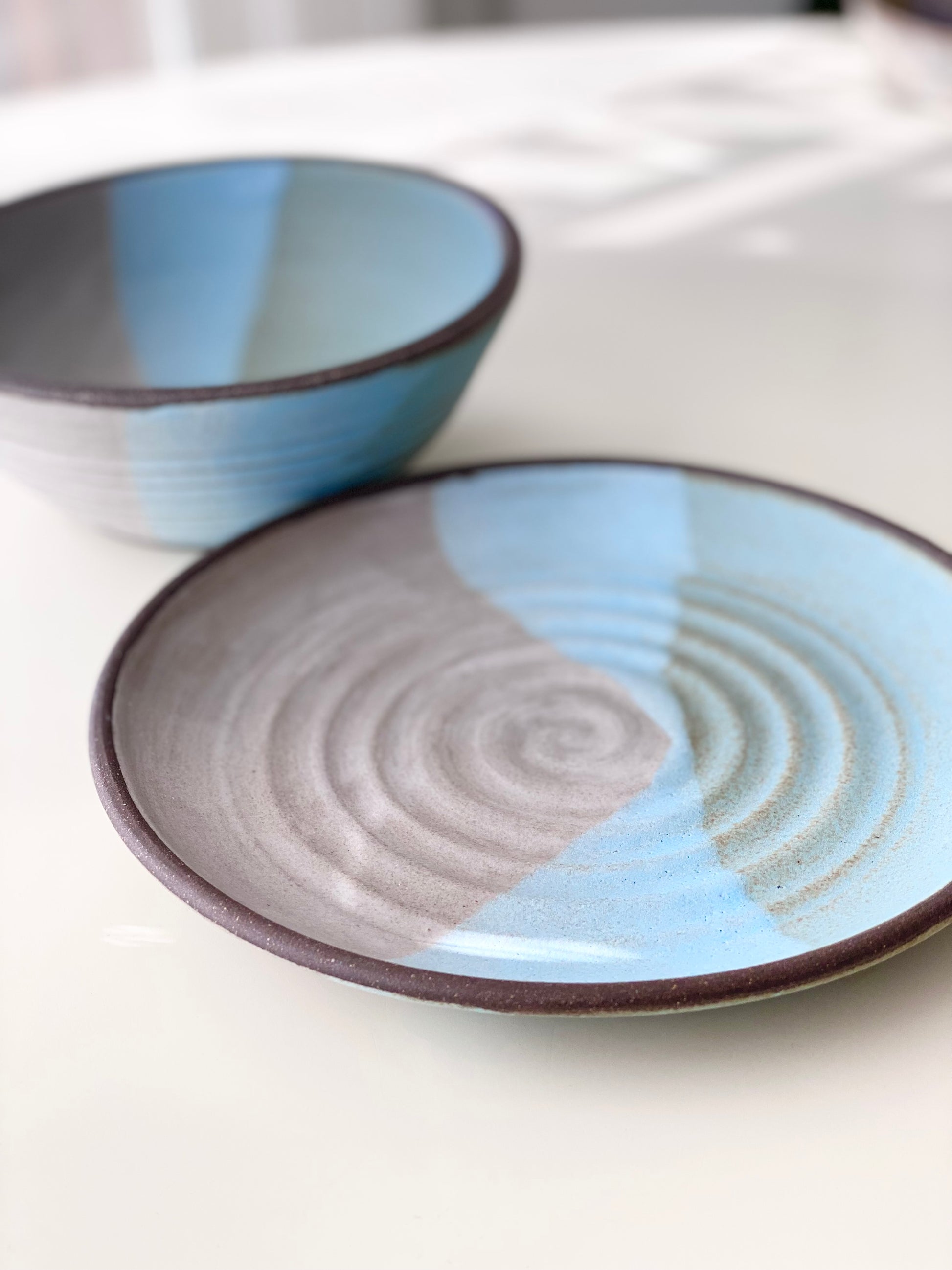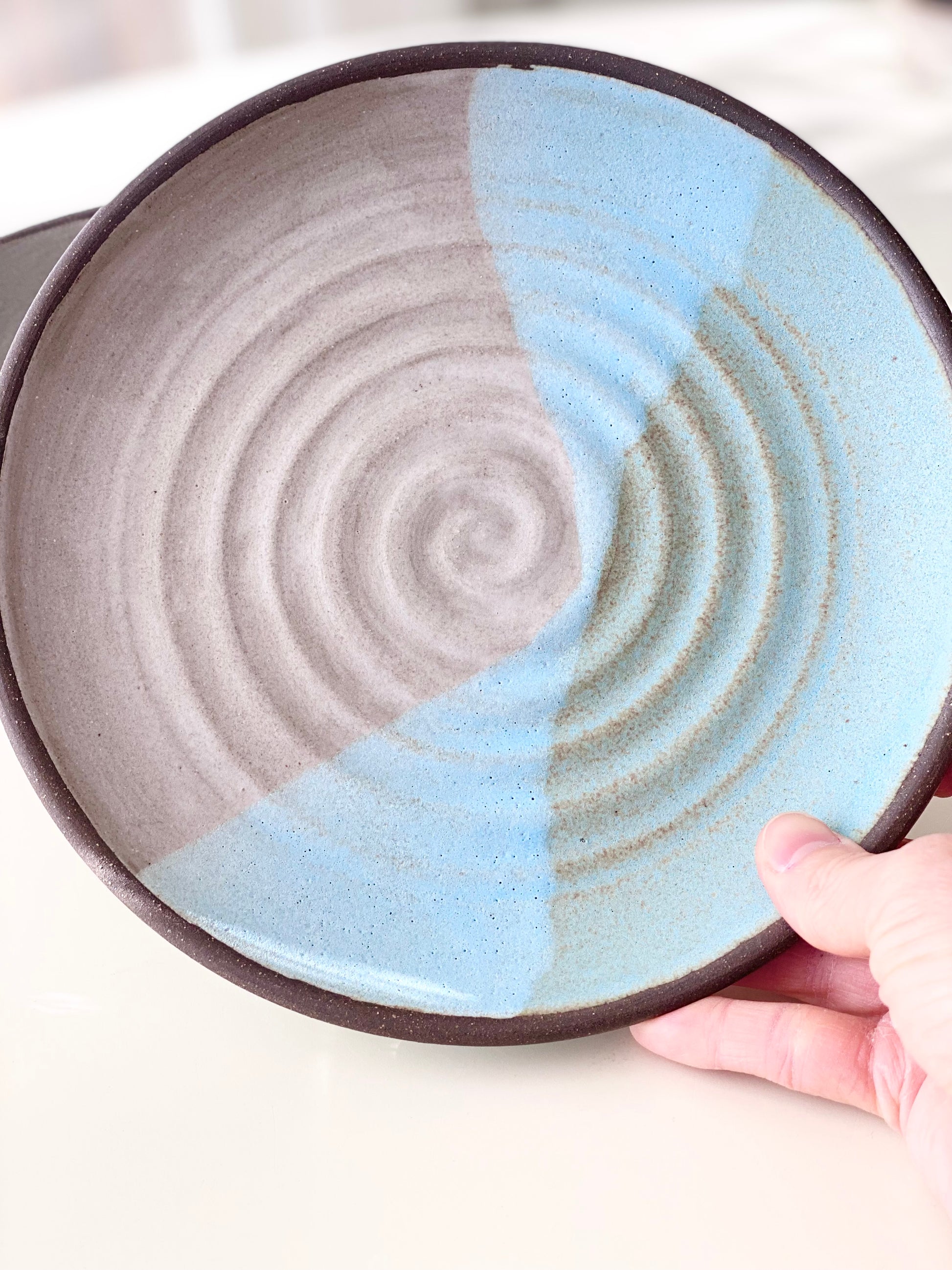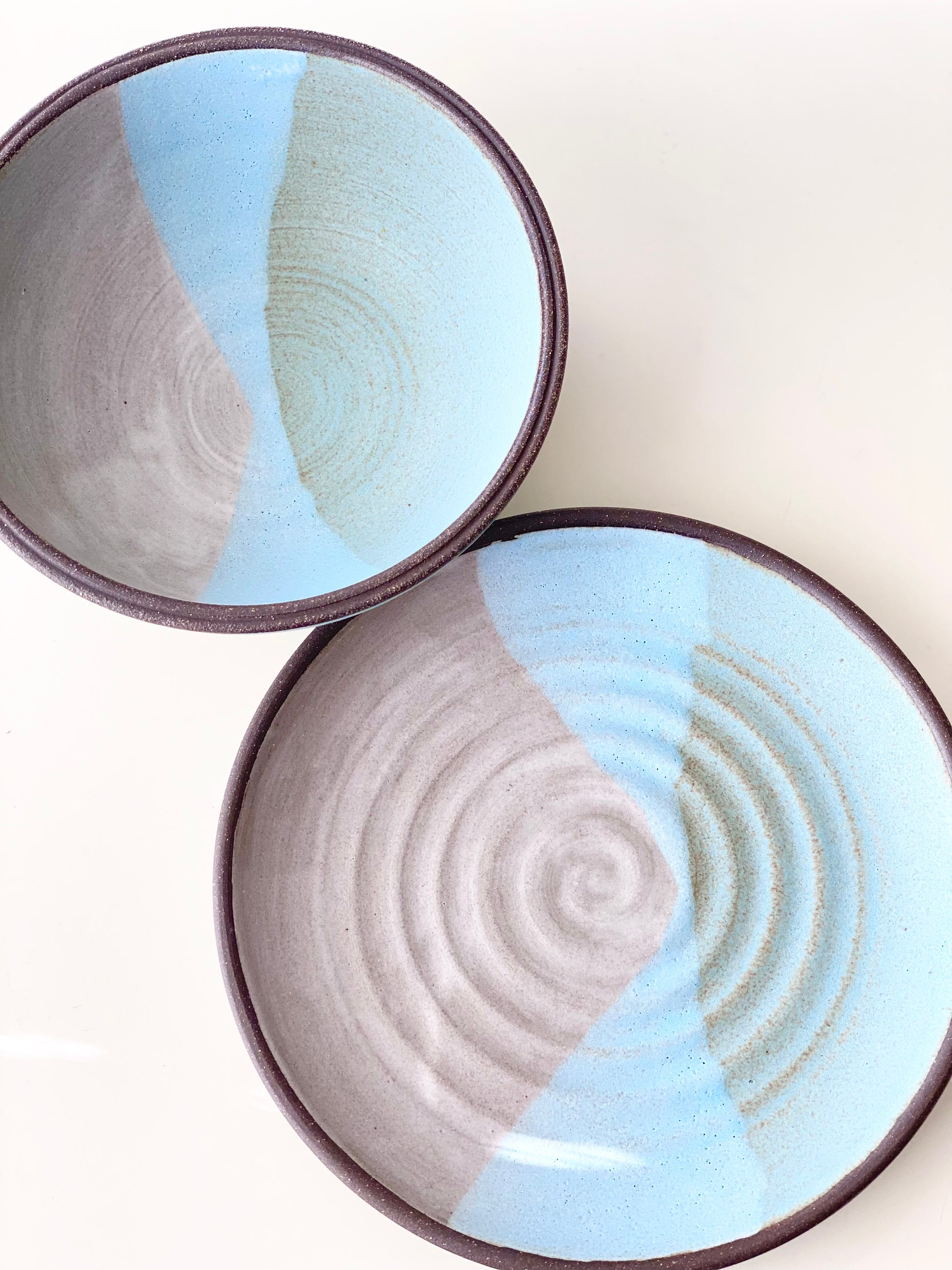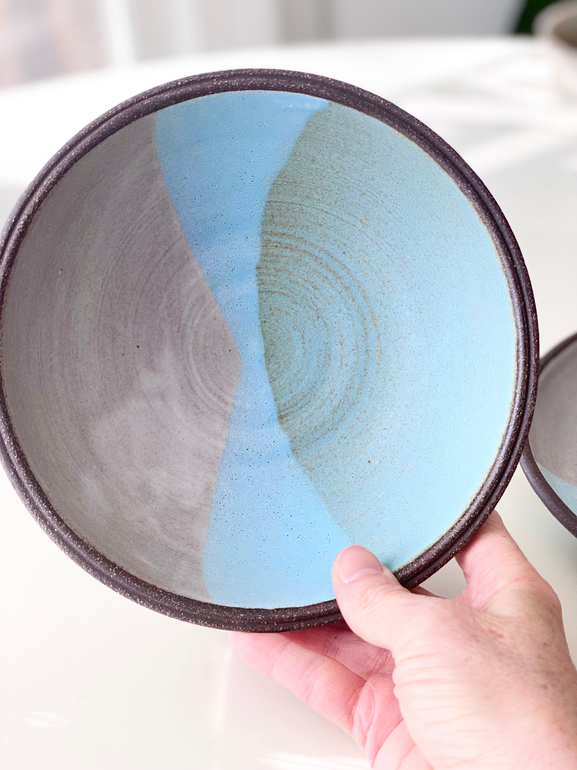 Hand-thrown stoneware pottery, carefully trimmed and layered with premium glazes for rich depth and movement. Oxidation fired to 2160°F, each piece is food safe, dishwasher safe (hand washing recommended), and microwave safe for short use.