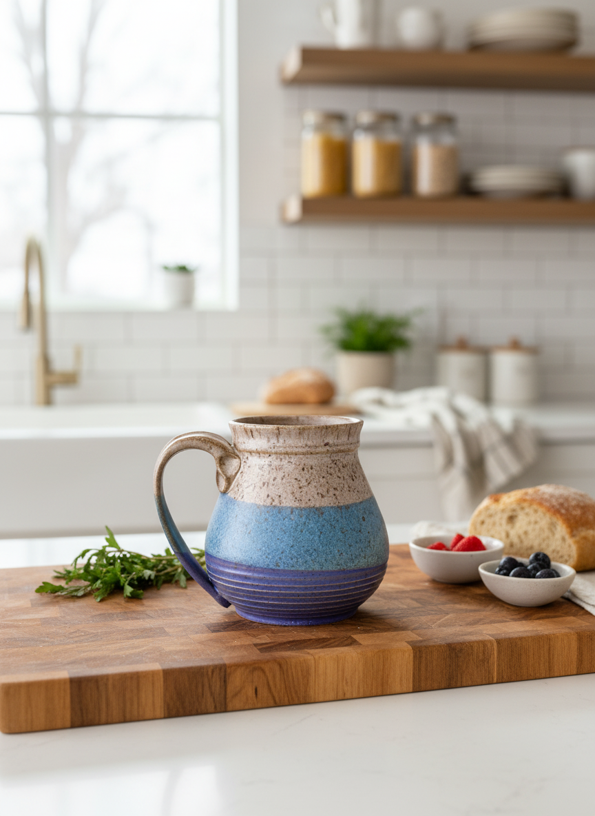 Hand-thrown stoneware pottery, carefully trimmed and layered with premium glazes for rich depth and movement. Oxidation fired to 2160°F, each piece is food safe, dishwasher safe (hand washing recommended), and microwave safe for short use.